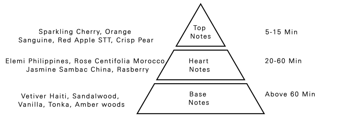 مقدمة العطر: كرز فوار، برتقال سانجوين، تفاح أحمر، إجاص منعش